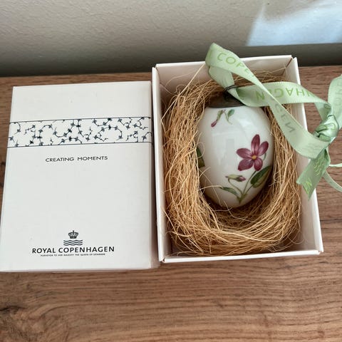 Porcelæn, Royal Copenhagen påskeæg., Smuk Royal Copenhagen stående bonbonniere/ vase med tulipan sælger, aldrig brugt.