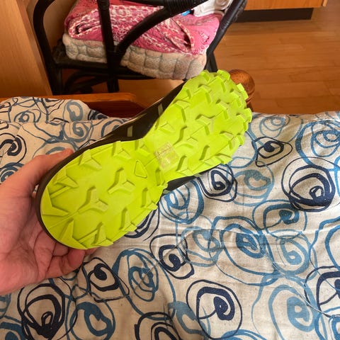 Salomon-sko i størrelse 44, sorte og orange. Til hverdag og små vandreture. Smart lukkemekanisme der gør dem mega nemme at få af og på