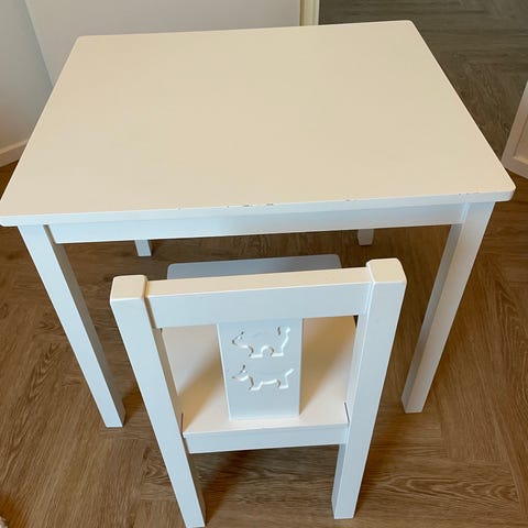 IKEA børnebord med 2 stole træ hvid