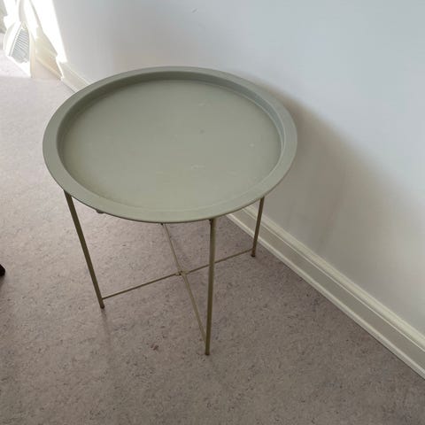 Vi sælger hermed et sødt sidebord/sofa/sengebord fra Søstrene Grene i den smukke pastel grønne med glasplade på top