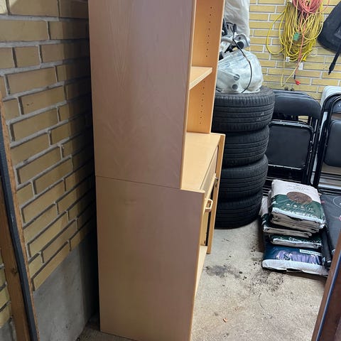 Vi har skåret et lille hul i det ene hjørne af bagpladen, da vi har haft en lille forstærker stående i skabet.