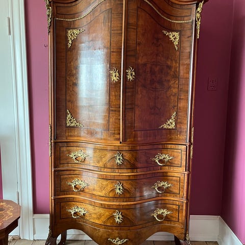 Chatol eller glasvitrine, mahogni finer, Kan evt. skilles ad til et væghængt vitrineskab og en kommode underdel.