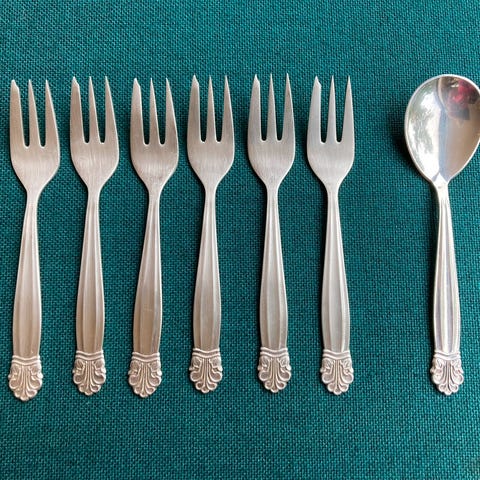 Bestik, Gafler i Rømø mønster, 6 velholdte gafler i 2 tårnet sølvplet.
