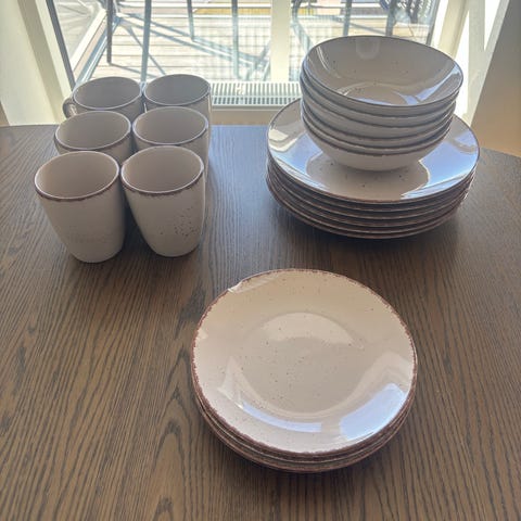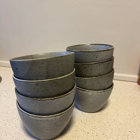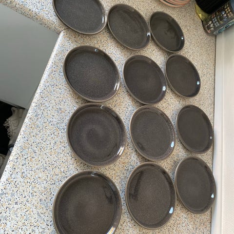 BITZ stentøj stel i grå nuancer. Stellet omfatter forskellige tallerkener, skåle og rektangulære fade i samme serie. Overfladen har en mat, reaktiv glasur med let spil i farven, som giver hvert stykke et individuelt udtryk. Egnet til daglig brug i køkken og på spisebord, f.eks. til servering af varme og kolde retter, snacks og tilbehør.