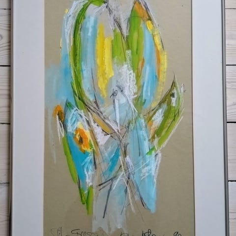 Oliemaleri på plade af Helle Buttenschøn. Signeret. I flot stand.