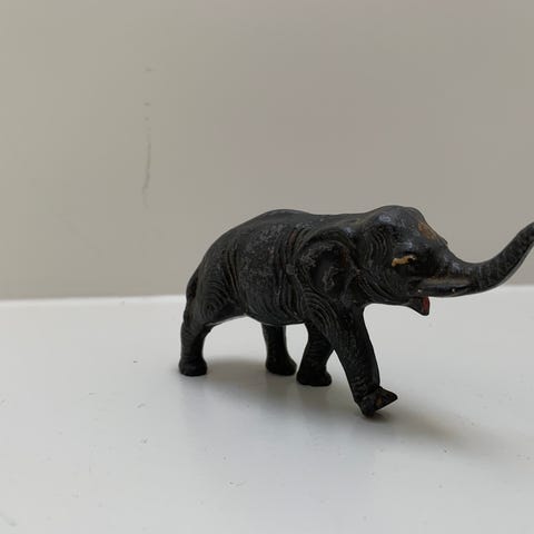 Næsehorn legetøjsfigur i grå plast. Figuren forestiller et stående næsehorn med to horn og tydelige hudfolder. Egnet som legetøj eller som dekoration på børneværelse eller samlerhylde. Materialet fremstår som hård plast. Størrelse og producent er ikke angivet.