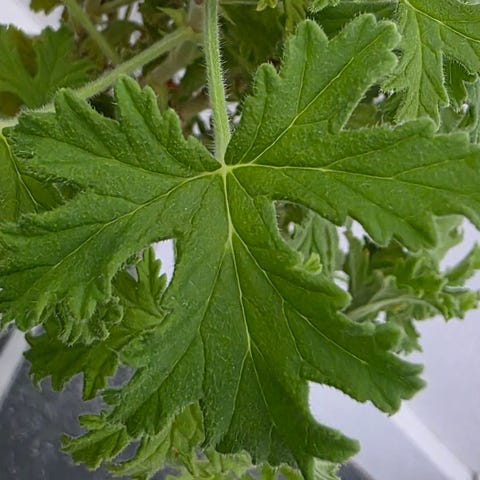 Duftgeranium er en duftende plante der allerede blomster med flotte lys violette blomster.