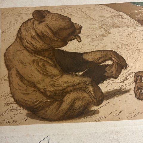 Louis Moe radering med bjørnemotiv opus 23
