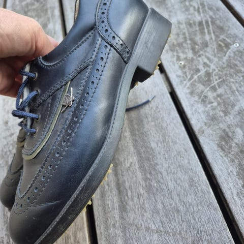 Pæne og velholdte golfsko i brun/sort design. Komfortabel pasform med blød inderside og solide softspikes under sålen. Perfekte til både træning og en runde på banen.