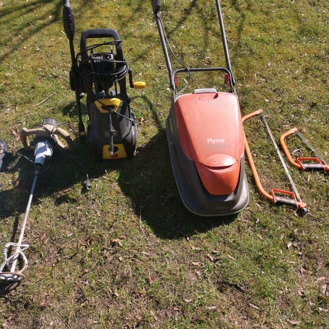 Følgende havemaskiner sælges, alle virker som de skal, kanttrimmer har været brugt en gang.