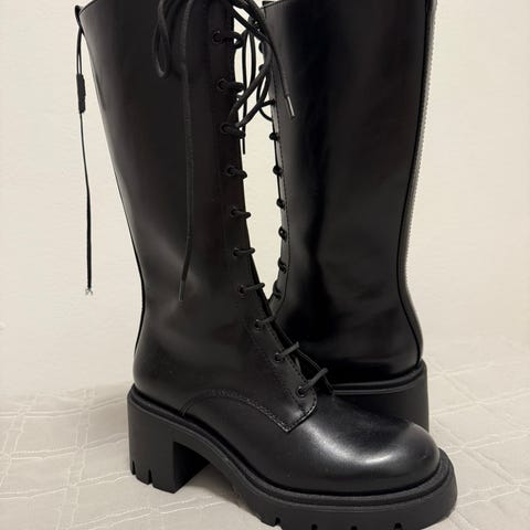 Zara støvler i størrelse 38 i sort. Klassiske ankelstøvler med elastikpaneler i siden og strop bagpå. Skind.