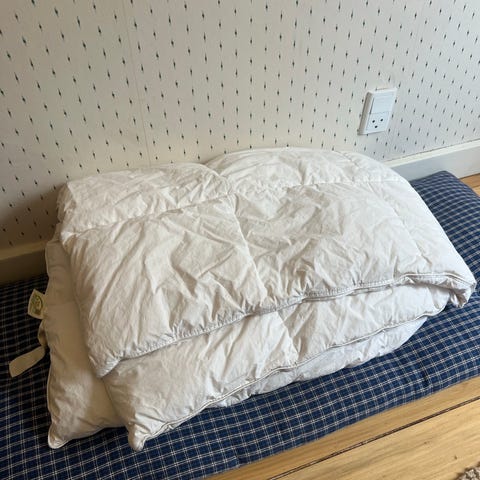 Allergivenlig juniordyne 100x135 cm med 90% hvide, europæiske gåsedun/10% gåsefjer. Fejler intet, kun mærket “Ringsted Dun” er lidt fadet efter vask. Ingen pletter og er nyvasket og tørretumblet.