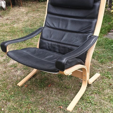siesta stol ingmar relling westnofa lænestol loungestol vintage design norsk skandinavisk modernisme retro møbel designklassiker høj ryg læder stol sort læder træ formspændt træ 60er 70er mid century lounge chair ottoman skammel original kvalitet på