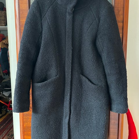 Frakke, str. 36, Ichi, Grå, 60% uld og 40% polyester, God men brugt, Pæn grå uld frakke med flot grønt inderfoer. Har lidt fnuller foran deraf den lave pris, ellers fejler den intet. Kommer fra et ikke ryger hjem.