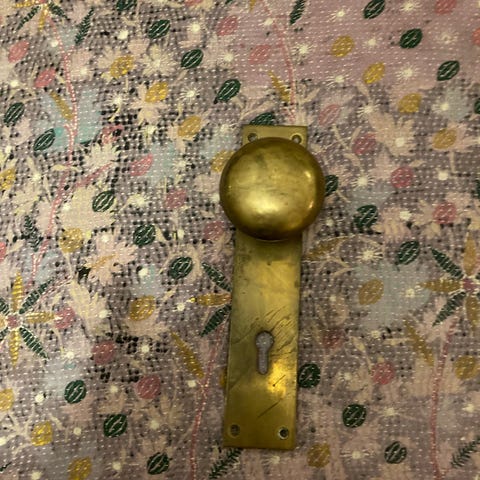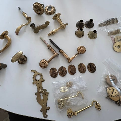 Messing dørgreb med rosetter og nøgleskilte
