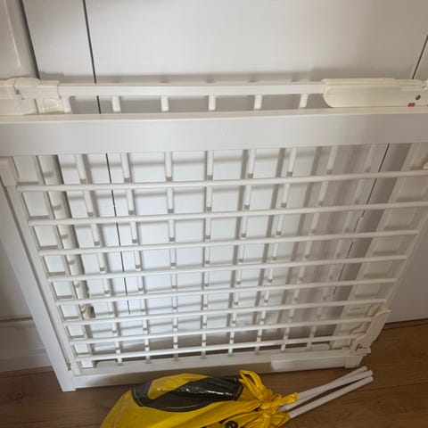 BabyDan sikkerhedsgitter i hvid metaludførelse. Gitteret er egnet til montering ved trapper eller døråbninger for at afskærme områder for mindre børn. Det består af lodrette tremmer og justerbare beslag, som kan fastgøres i væg eller gelænder afhængigt af monteringstype. Velegnet som børnesikring i hjemmet, hvor der er behov for en fysisk barriere ved niveauforskelle eller adgang til bestemte rum.