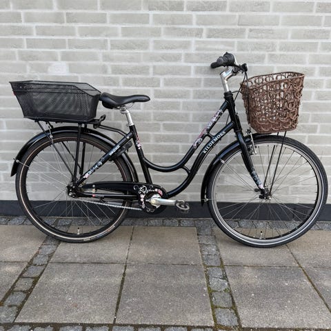 Kildemoes Bikers Pigercykel med 26" hjul. Cyklen har lav indstigning og er udstyret med bagagebærer, kædeskærm, støtteben og kurv foran. Velegnet som overgangscykel til større børn, der er klar til 26" hjul. Farver og dekorationer fremgår af billederne.