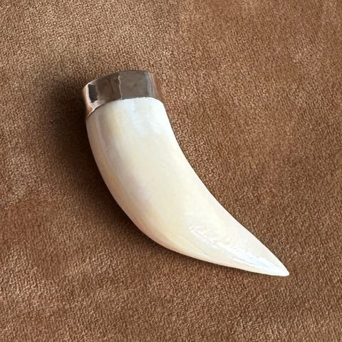 Meget fin Grønlandsk Ulo. Håndlavet vedhæng i Sterling 925s sølv og tand, sandsynligvis isbjørnetand. Kæde medfølger ikke.