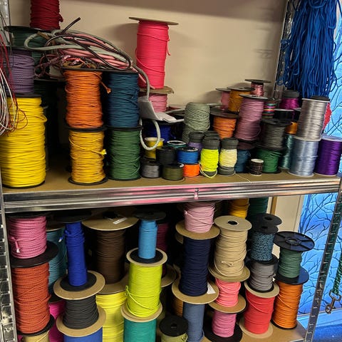 Paracord snor sæt i flere farver. Sættet indeholder snore i rød, grøn og gul, samlet i én pakke. Velegnet til hobbyprojekter, håndarbejde.