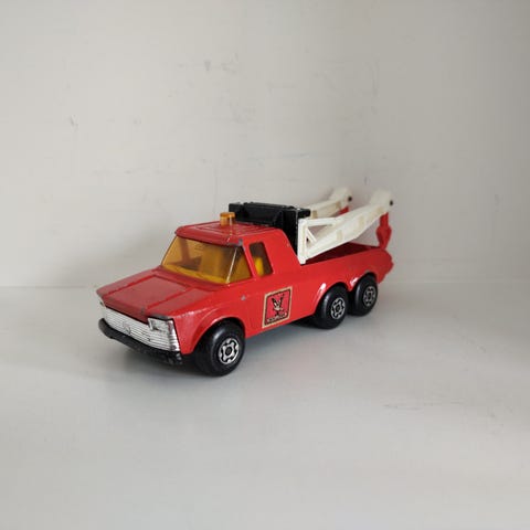 Kranen og støttefødder virker fint. Pæne vinduer og gode hjul. Motorhjælmen fungerer. Med begge sidespejle og udstødning.