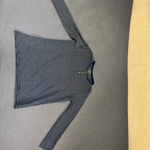 H&M bluse til kvinder i størrelse L. Blusen er fremstillet i bomuld og har et multifarvet stribet mønster i nuancer af rød og mørkeblå. Langærmet model med rund hals. Egnet til hverdagsbrug og kan bruges alene eller over en top.