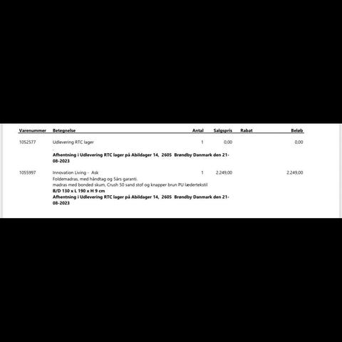 Idemøbler skumgummi madras.