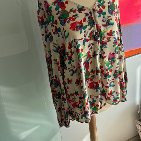 ICHI bluse i størrelse S til kvinder. Blusen er fremstillet i 100 % polyester og har et multifarvet mønster i lyse og mørke nuancer. Modellen har V-udskæring og lange ærmer. Velegnet til hverdagsbrug eller mere pæne anledninger afhængigt af styling.