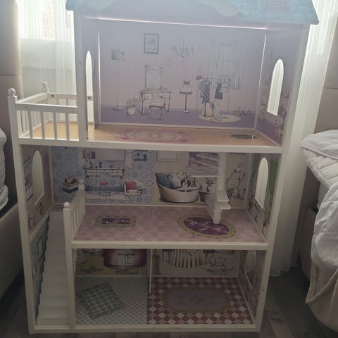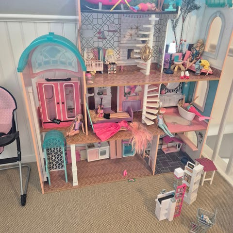 Barbie dukkehus i tre etager, I træ (mdf) 120x80x33 med elevator. Møbler på billede er inkl.