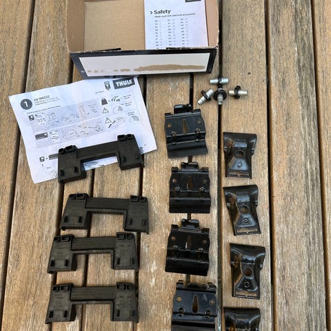 Ford Focus Thule tagbøjler til Focus tagræling (T-frofil+Fikserinsgpunkt) (Rapid 753) (Modsvarer dem Thule kalder "Thule SquareBar Evo" bestående af bøjler 712200, Platform 710700 og kit 187018 + kit 187087 ).