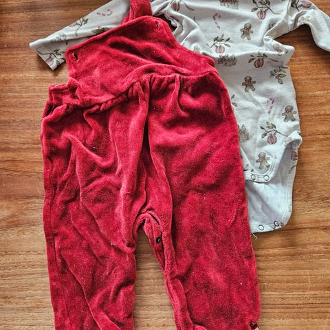 That's Mine blødt og fint Rudolph julesæt i størrelse 50. Med langærmet body og leggings/bukser. Brugt en enkelt gang. Der er dobbeltlukning i body, så den kan bruges lidt længere. 48% økologisk bomuld, 47% modal, 5% elastane. Kun vasket i neutral vaskemiddel.