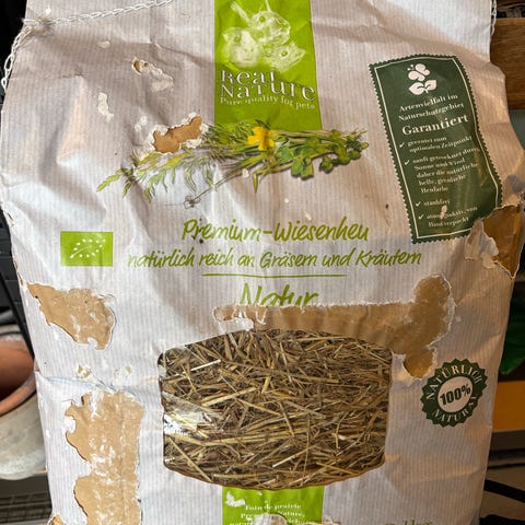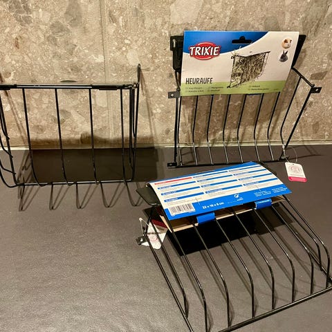 Smart hø hæk til kaniner, sættes op med de to karabinhager og så åbnes den i toppen med velcro.