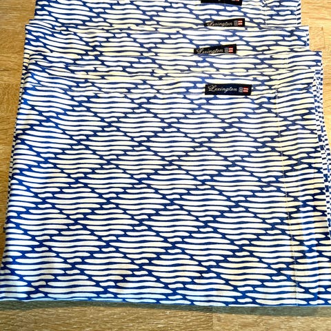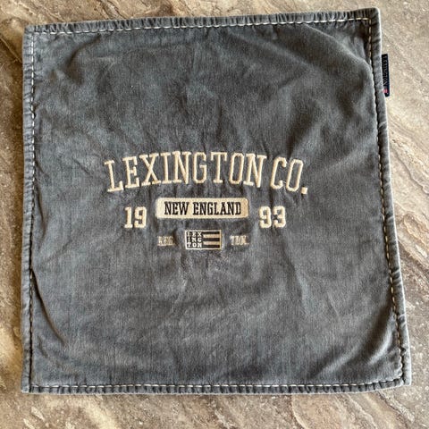 Lexington pudebetræk med stjernemotiv i rød og blå. Forsiden har todelt farvefelt i rød og mørkeblå med stor hvid stjerne i midten. Kun brugt som pyntepude, aldrig ligget på den.