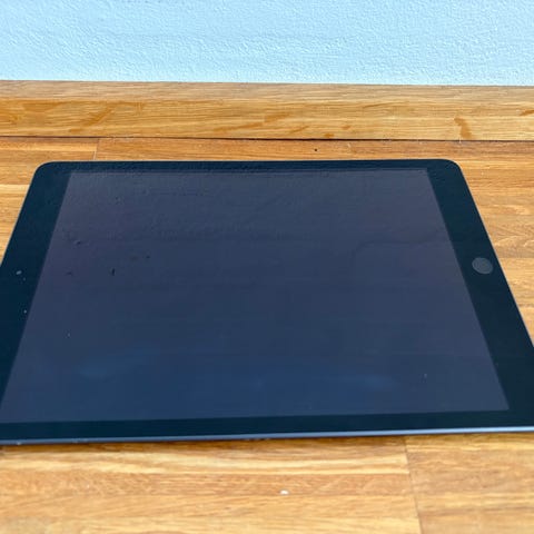 Apple tablet. Enheden fremstår med sort front og hvid ramme. Velegnet til generel brug som f.eks. internet, streaming og apps. Yderligere specifikationer som model, lagerplads og skærmstørrelse bør angives af sælger, hvis kendt.9 gen med 64gb