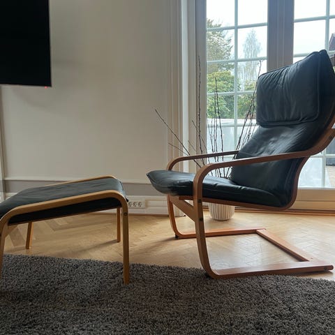Foldbar lænestol i læder. Købt sidste år, står som helt ny - er udelukkende brugt som pyntestol.