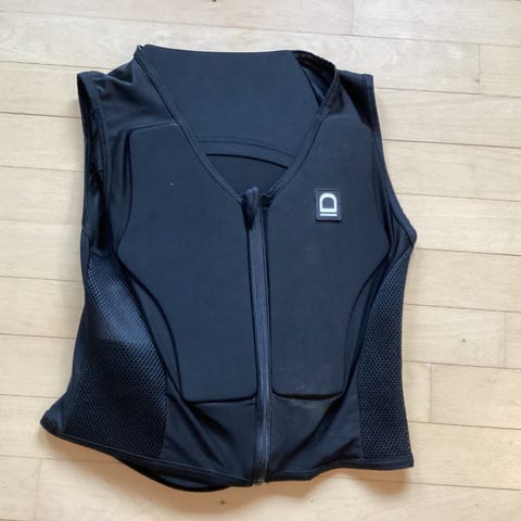"Den korte model." - medium. Det betyder at den er kort at ride med - men når den er aktiveret dækker den lige så godt som de andre modeller. Denne model udmærker sig ved en slids i siden, der gør den meget fleksibel i bredden. På denne måde kan vesten med fordel anvendes med meget tøj om vinteren, og med lidt tøj om sommeren.