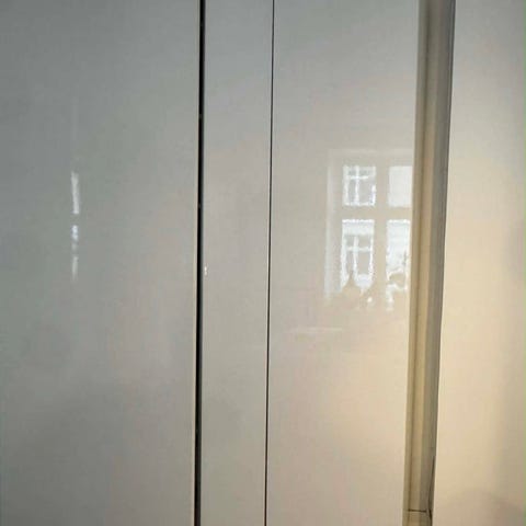 Vi sælger dette stilrene og meget rummelige PAX garderobeskab i mørkegrå. Skabet er sammensat med både hylder, skuffer og bøjlestang. Det er 2.5 år gammelt. Vi sælger det, da vi flytter og ikke kan have det med.