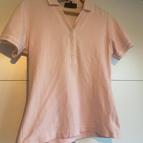 Polo shirt fra ETERNA i lyseblå bomuld. Slidser I siderne. Brystvidde fra ærmegab til ærmegab 54 cm. Længde 64 cm. Str. 42. Fremstår som næsten ny. Kun brugt et par gange. Køber betaler porto