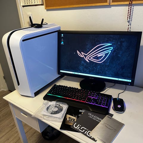 Alt i alt et ganske fint og meget velholdt setup, og med to skærme giver det masser af “street-credit” i gamerhjørnet.