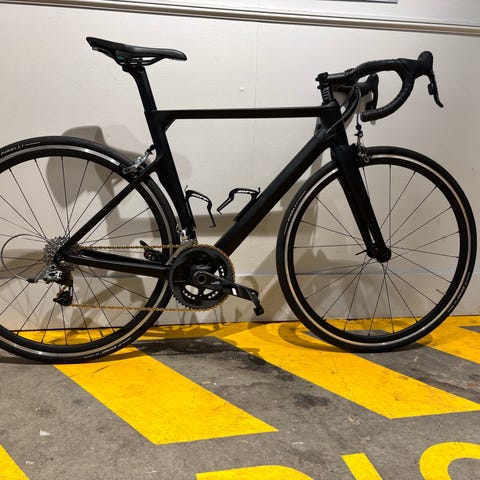 Cyklen har carbon stel og forgaffel i FACT carbon, som giver lav vægt og god stivhed, Opgraderet højprofil carbon fra Rebel, som er snorlige (Ny pris: 6000 kr.) til dæk og slanger, og har max kørt 3000 km.