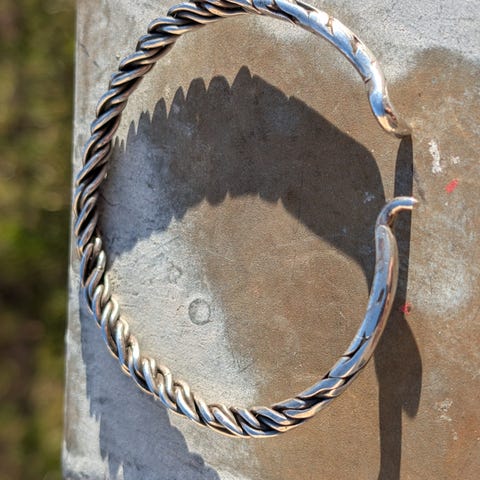 FLOT ARMRING I SNOET MØNSTER, DET ER SVENSK SØLV, MED 3 KRONER OG S !