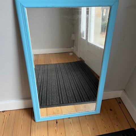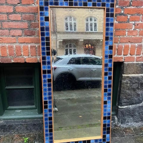 spejl 60 * 115 cm med træramme og blå mosaikfliser