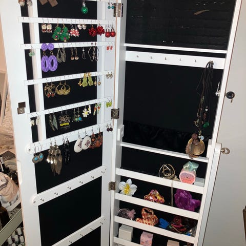 - Fritstående smykkeskab med rammeløst helkropsspejl