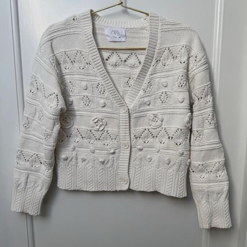 H&M cardigan striktrøje pige str. 134-140 hvid bomuld