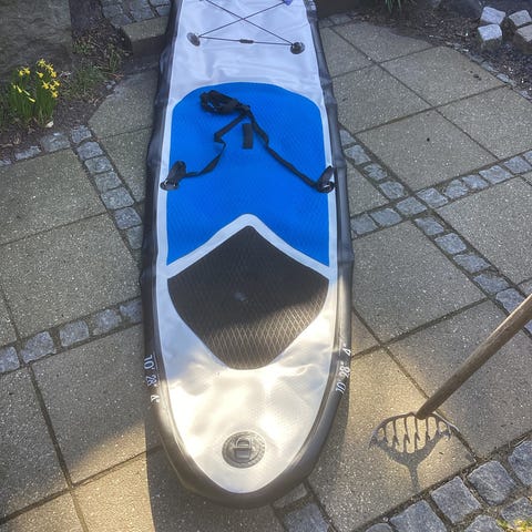 Aqua Marina Wave Stand Up Paddleboard med en længde på 10'6". Boardet har en sort og rød farvekombination og er fremstillet i holdbart materiale egnet til vandsport. Inkluderer pumpe, finner og tilbehør til oppustning og brug.