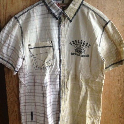 Kortærmet blå/hvid/grå fra Petrol Industries og langærmet sort/hvid/grå skjorte fra Hounds (str m)