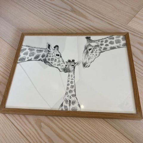 2 plakater med giraf i sort-hvid