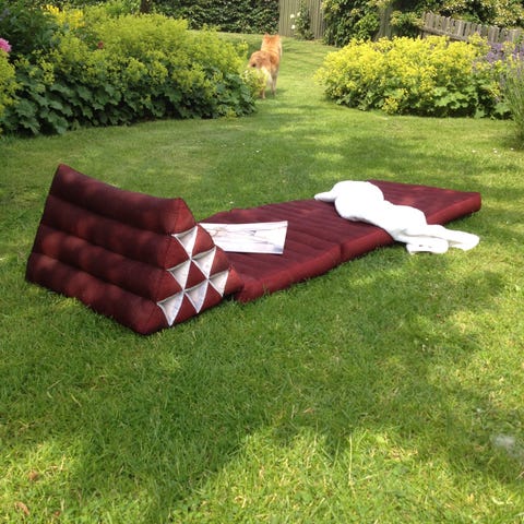 1 stk. Multi madras i bomuld. Super til haven, altanen, terrassen. Kan også bruges på børneværelse som stol og børne aktiviteter. Madras tykkelse 9 cm, bred 53 cm, fuld længde 163 cm. Farve: bordeaux.