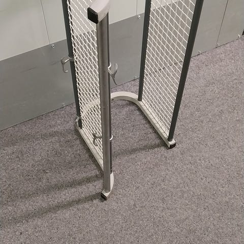 Solid svensk retro hattehylde knagerække grå krom l 160 d 30 h 30 har almindelige aldersrelateret brugsspor.