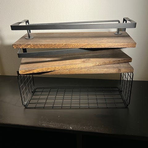 Rullebord i metal med tre trådhylder og hjul. Bordet har håndtag i begge ender, så det er let at flytte rundt. Egnet til opbevaring i fx køkken, bryggers, kælder eller garage, hvor der er behov for ekstra hyldeplads på et mobilt stativ.