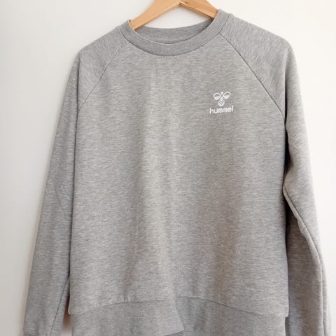Helt ny grå hummel hoodie med klassisk kængurulomme og hætte med justerbar snøre i.